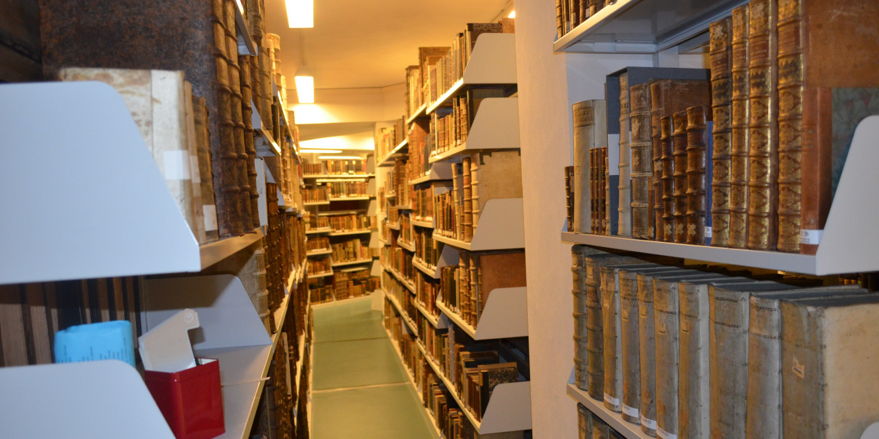 Unterhalb des Lesesaals ist das Hauptmagazin, in das Dr. Suchan die sehr interessierten Besucher führte. Dr. Suchan erläuterte, wie Bücher erhalten werden, sie zukünftig genutzt werden. Studierende der HAWK entwickeln Methoden zum Konservieren z. B. um Einbände zu schützen. Einige Bücher wurden unter diesem Hintergrund gezeigt und Problematiken sehr anschaulich erläutert.