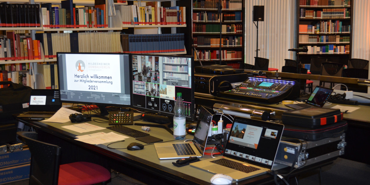 Die Mitgliederversammlung in der besonderen Atmosphäre des wie zu einem Fernsehstudio umfunktionierten Lesesaals der Dombibliothek, an der die Teilnahme online oder in Präsenz möglich war, fand sehr positive Resonanz.