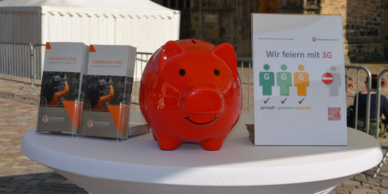 Im Eingangsbereich wartete im Pavillon des Dombauvereins der Dombauverein u.a. mit einer Präsentation des aktuellen Bauprojektes “Sanierung St. Annenkapelle” auf die Konzertbesucher. Vorstand und Mitarbeiter empfingen die Gäste und standen für Fragen zur Verfügung - ein Sparschwein stand zur “Spendenfütterung” bereit.