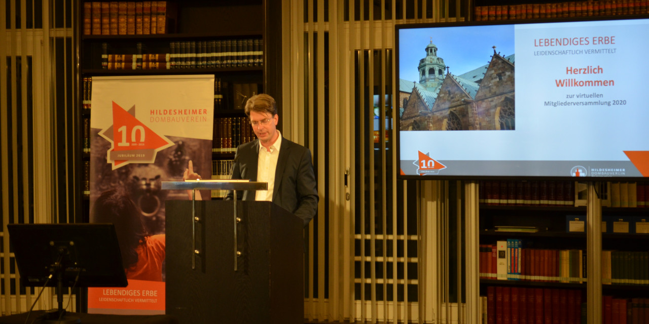Dr. Ingo Meyer begrüßte die Teilnehmer und erläuterte die Modalitäten zu Wortmeldungen und zur Abstimmung. Herr Dr. Meyer blickte auf eine besondere Zeit zurück, die alle sowohl im persönlichen als auch in allen weiteren Bereichen vor große Herausforderungen gestellt hat – und auch weiterhin stellen wird. Die Vorgaben der Corona-Pandemie wirkten und wirken sich auf alle Lebensbereiche aus, so auch auf den Dombauverein.