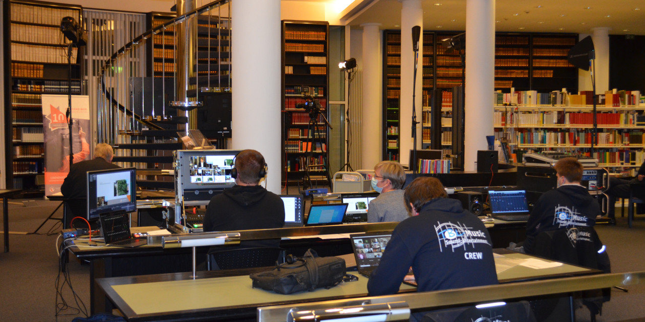 Die Mitgliederversammlung im Online-Format war ein gelungenes Experiment und fand sehr positive Resonanz bei den teilnehmen Mitgliedern. In der besonderen Atmosphäre des wie zu einem Fernsehstudio umfunktionierten Lesesaals der Dombibliothek fand die Ausstrahlung statt.